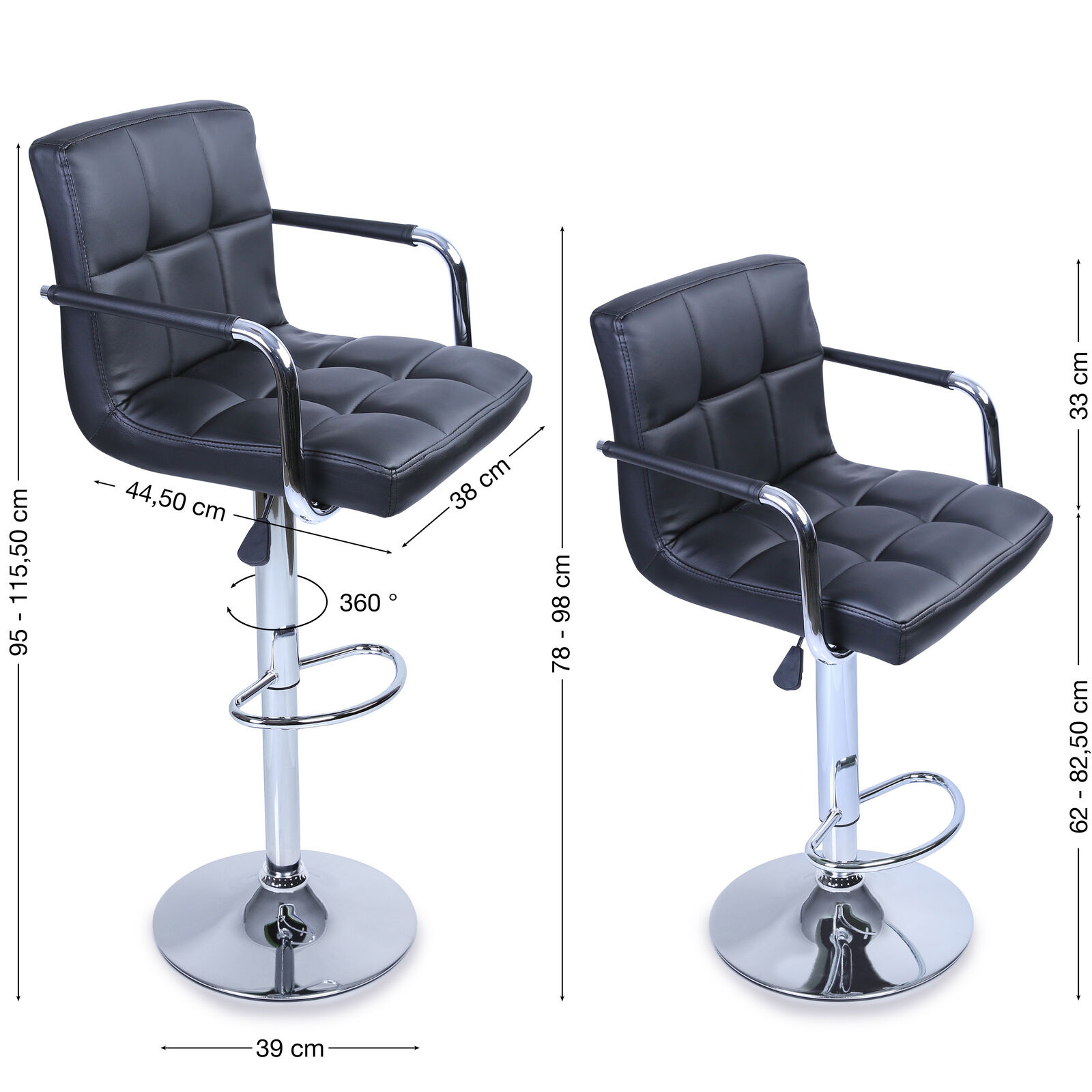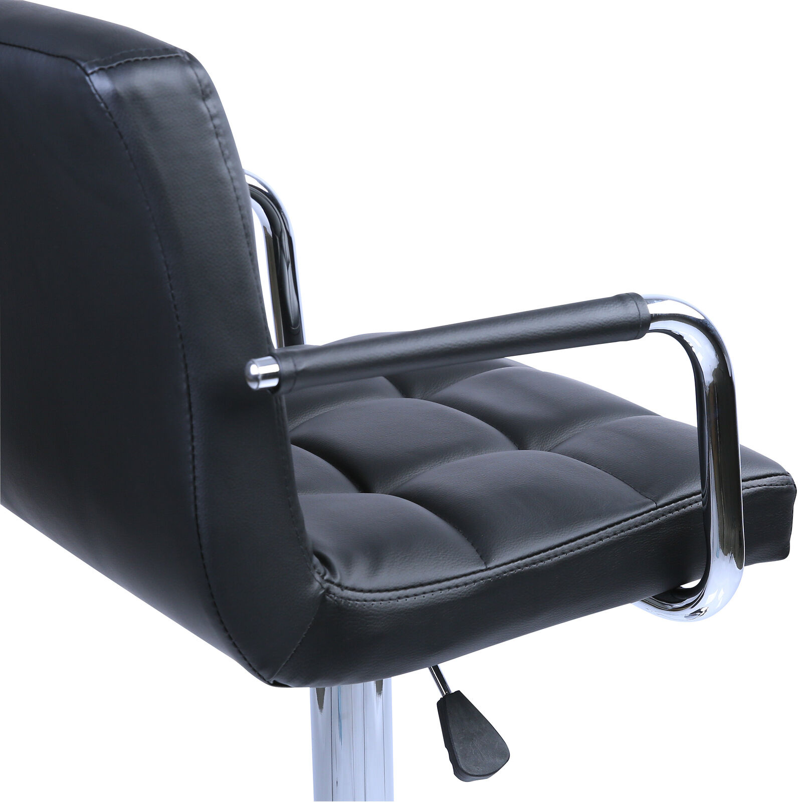 Židle má praktickou opěrku na nohy z pochromovaného kovu. Kruhová podnož a centrální noha jsou z chromu v lesku.