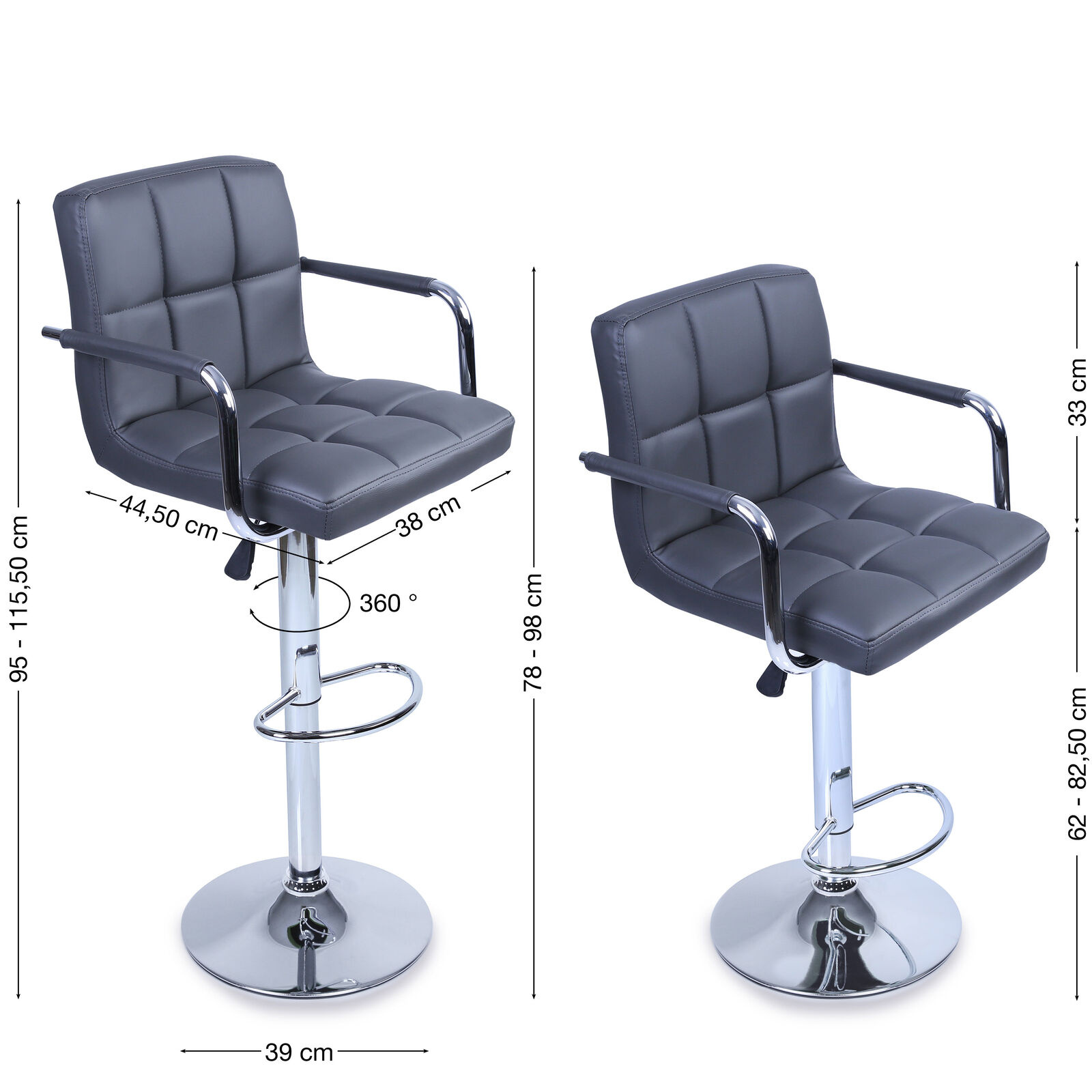 Tresko 2x Barová židle s područkami BH015 Grey