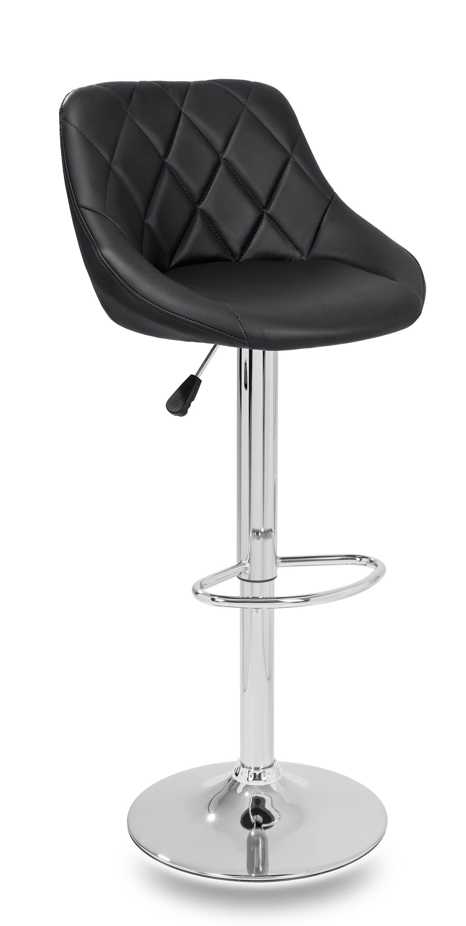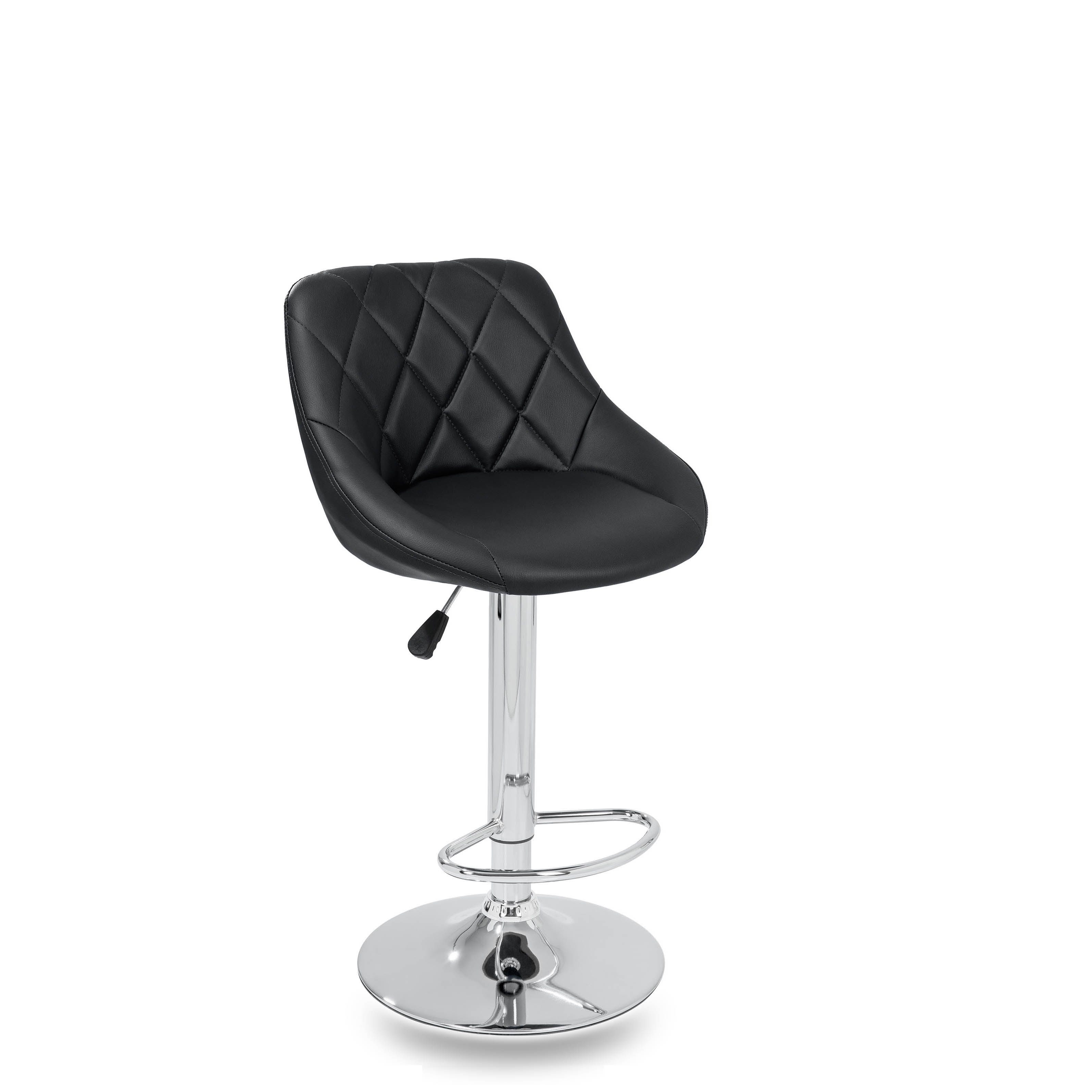Židle má praktickou opěrku na nohy z pochromovaného kovu. Kruhová podnož a centrální noha jsou z chromu v lesku.