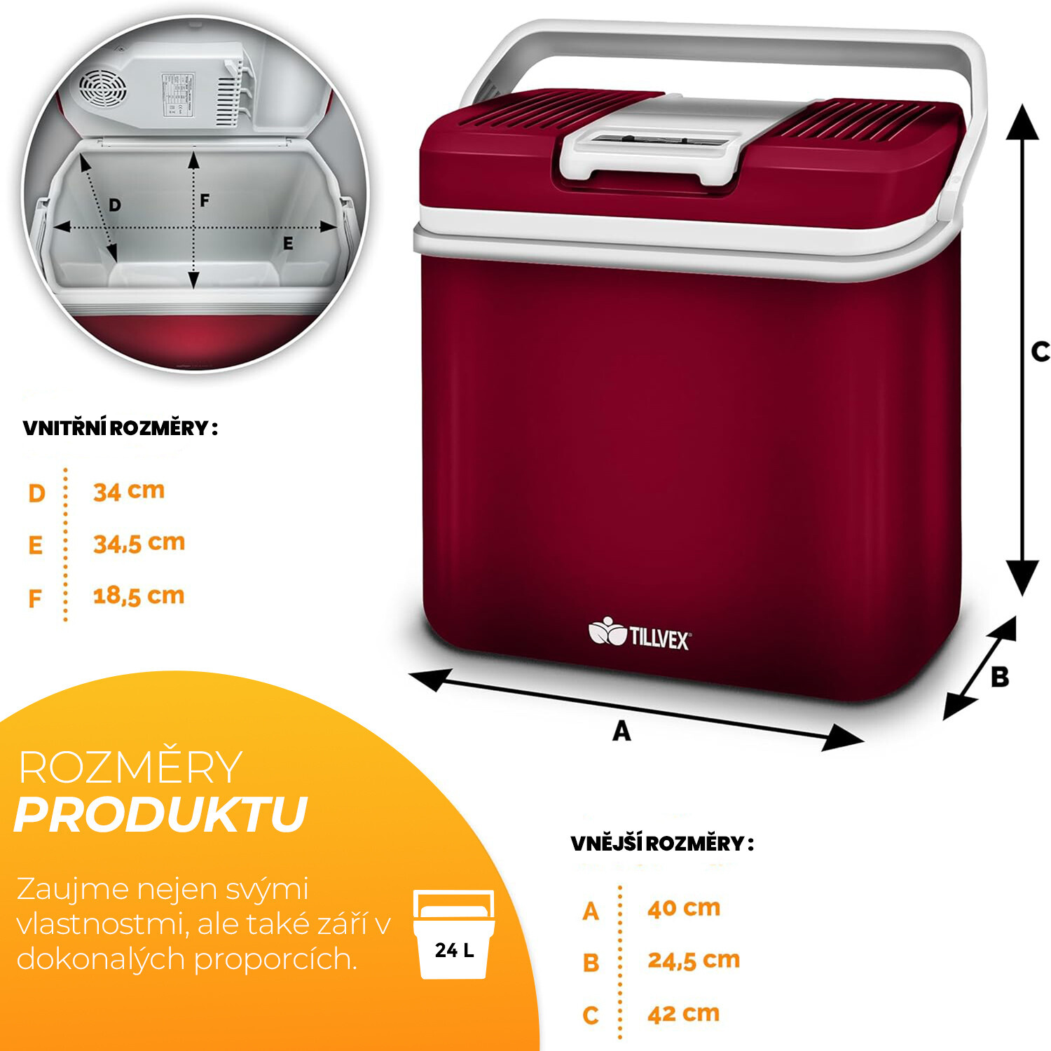 Vzhledem k objemu 24 l nabízí spotřebič dostatek prostoru pro přepravu nápojů a potravin. Do elektrického boxu lze uskladnit plechovky o objemu 0,33 l a láhve o objemu 0,5 l.