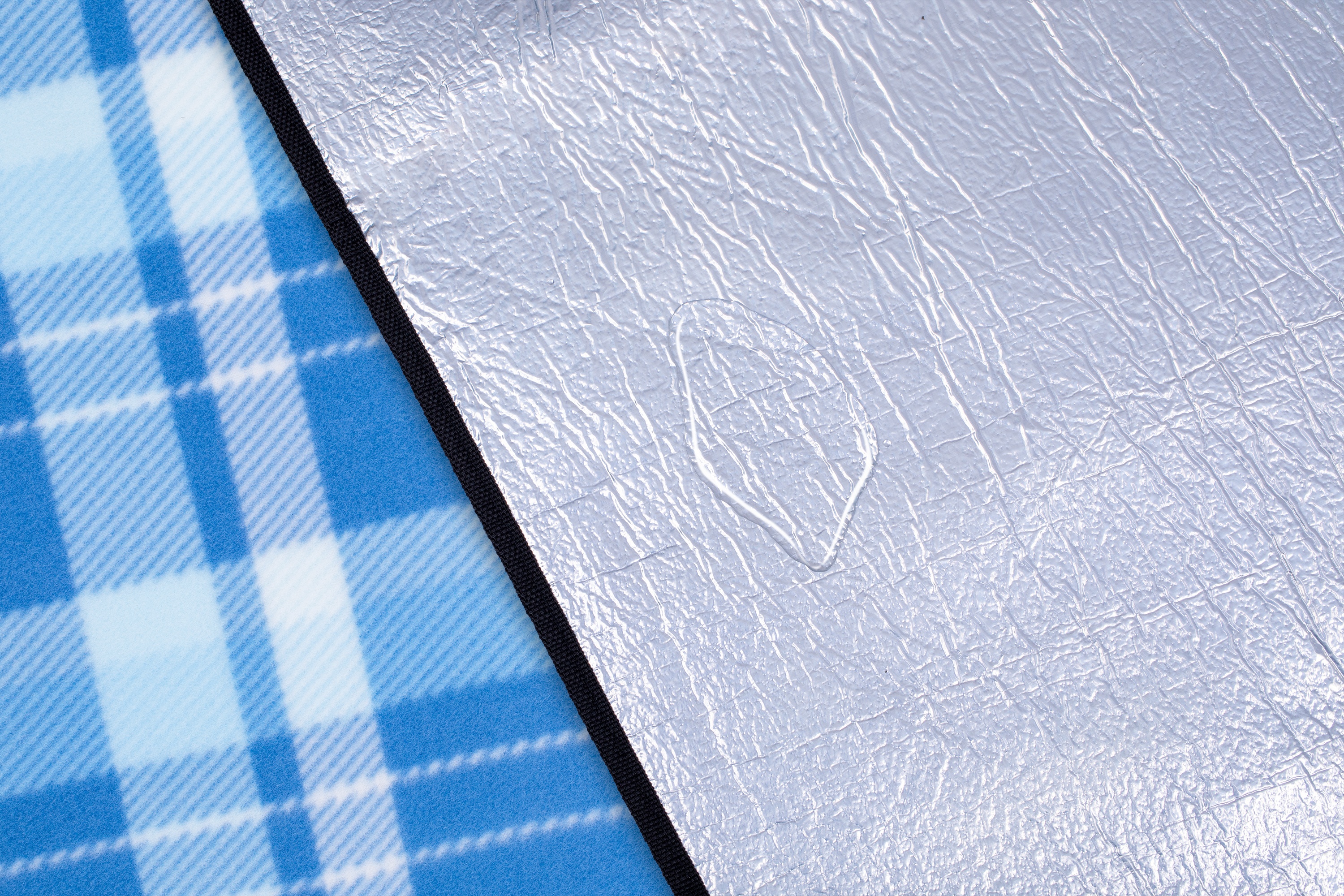 Materiál je na dotek příjemný fleece. Spodní vrstva je vyrobena z hliníkové fólie opatřené voděodolnou úpravou, která tak chrání před vlhkem a chladem například od mokré trávy.