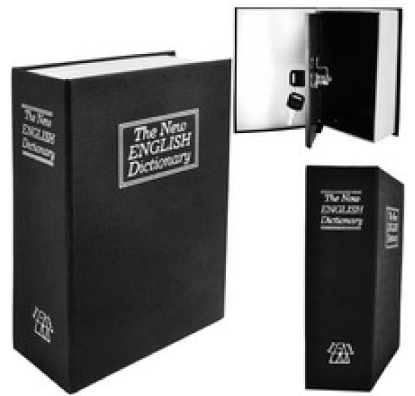 Kazeta skrytá v knize je řešením, které chrání před neoprávněným přístupem k předmětům ukrytým uvnitř . Zdařilá napodobenina knihy na první pohled promění přenosný trezor na polici k nepoznání . Textura potahu a realistický tvar povlečení znamenají , že nepřitahuje pozornost . Název vyrytý na obálce také napovídá, že jde jednoduše o jazykový slovník, který je jednou z velmi běžných věcí používaných každý den v domácnostech, bytech, kancelářích nebo na jiných místech.