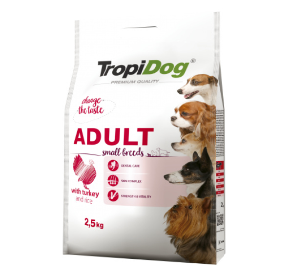 Krmivo Premium s krocanem a rýží pro dospělé psy malých ras (od 10. měsíce života). Obsahuje vysoce stravitelné drůbeží bílkoviny, v tom bílkoviny z krocana a dále zeleninu, ovoce a řasy řasy (Ascophyllum nodosum). Dodatek jablka, mrkve a hrášku je zdrojem přírodních vitamínů a vlákniny, které pomáhají zlepšit funkci střevního traktu. Pšeničné a kukuřičné přípravky, které jsou v krmivu, obsahují dobře vstřebatelný lecitin, vitamín E, vitamín ze skupiny B a dále nenasycené mastné kyseliny, například řasy kelp jsou zdrojem minerálních sloučenin (v tom cenný jód). Tyto složky jsou hlavně důležité pro zdraví a celkovou kondici zvířat – mimo jiné vhodné jejich imunitu a zaručují správnou funkci pokožky a s ochrannými bariéramiDental Care Formula.