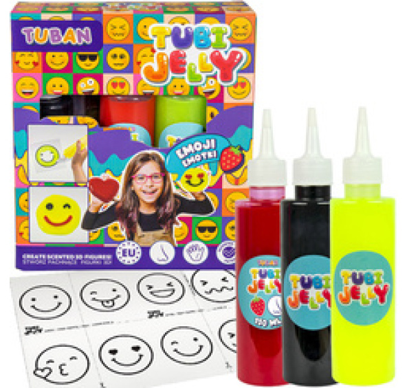 Tubi Jelly je nová plastická hmota, která po spojení s vhodným aktivátorem umožňuje vytvářet trojrozměrné figurky s gelovou konzistencí.