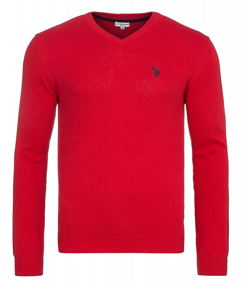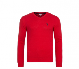 Pánský značkový svetr od firmy U.S. Polo Assn. vyrobený ze 100% bavlny s V výstřihem kolem krku, pružnými manžetami, žebrováním na rukávech a vyšívaným logem na levé straně hrudi.