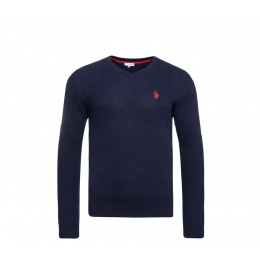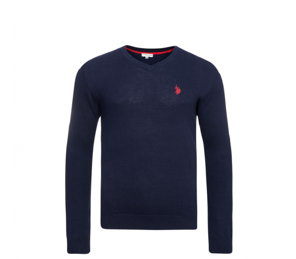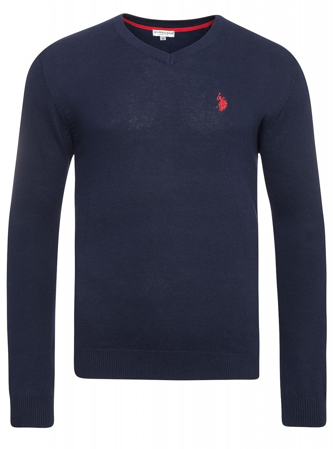 Pánský značkový svetr od firmy U.S. Polo Assn. vyrobený ze 100% bavlny s V výstřihem kolem krku, pružnými manžetami, žebrováním na rukávech a vyšívaným logem na levé straně hrudi.