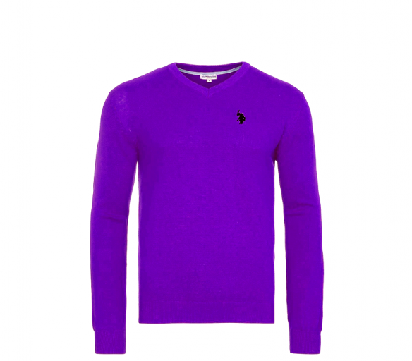Pánský značkový svetr od firmy U.S. Polo Assn. vyrobený ze 100% bavlny s V výstřihem kolem krku, pružnými manžetami, žebrováním na rukávech a vyšívaným logem na levé straně hrudi.