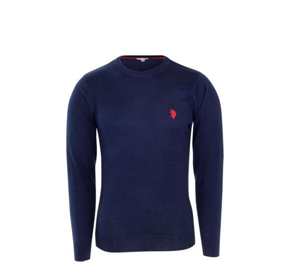 Pánský značkový svetr od firmy U.S. Polo Assn. vyrobený ze 100% bavlny s klasickým kulatým výstřihem kolem krku, pružnými manžetami, žebrováním na rukávech a vyšívaným logem na levé straně hrudi.