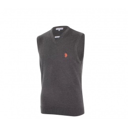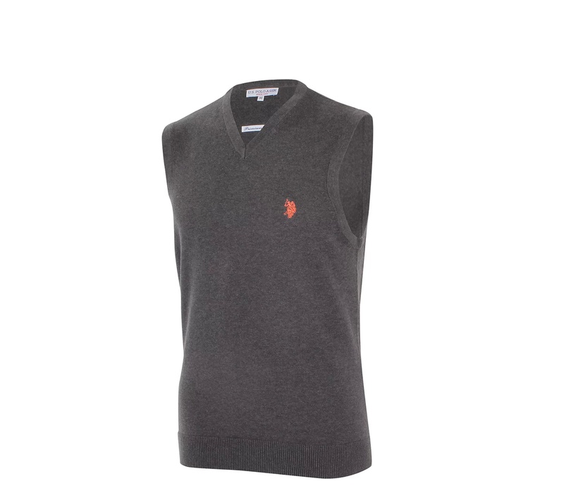 Pánská značková vesta od firmy U.S. Polo Assn. vyrobený ze 100% bavlny s V výstřihem kolem krku, pružnými manžetami, žebrováním na rukávech a vyšívaným logem na levé straně hrudi.
