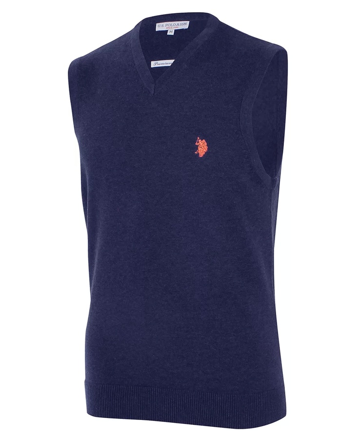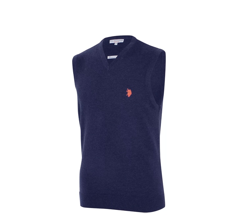 Pánský značkový svetr od firmy U.S. Polo Assn. vyrobený ze 100% bavlny s V výstřihem kolem krku, pružnými manžetami, žebrováním na rukávech a vyšívaným logem na levé straně hrudi.