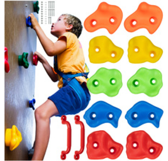 * bezpečné pro děti - šplhací madla jsou vyrobena z odolného PP materiálu, odolný proti povětrnostním vlivům a poškození, navíc protiskluzový povrch poskytuje pevný úchop a eliminuje riziko uklouznutí rukou nebo nohou
