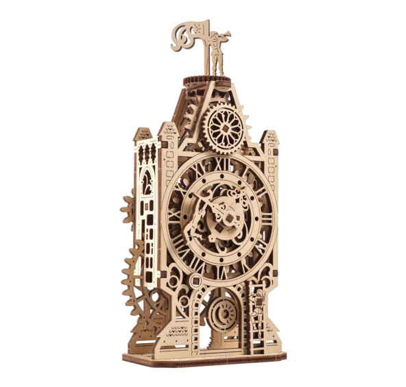 Dotkněte se historie! Stavebnice hodinové věže vyrobená z překližky. Vnese do Vašeho domova, či kanceláře renesanční atmosféru a okouzlí Vás detaily vyprávějícími poutavý příběh. Koho představují a jakou mají úlohu rozmanité postavy, které věž zdobí? Nechejte pracovat svou fantazii a odhalujte při tom půvabnou práci jednoduchého ozubeného soukolí. Otáčením velkého kola uvedete v chod reálný asynchronní převod hodinových ručiček, kyvadlo, větrnou korouhev i jiné detaily stavby. Výsledný model hravě zapadne mezi další z pestré řady hodinových mechanismů UGEARS. Díky své nízké obtížnosti je stavebnice přístupná i menším dětem, které se zábavnou formou mohou naučit orientovat v čase. Vybaveno detailním návodem k sestavení. Hlavní vlastnosti:44 precizně vyřezaných dílkůnízká obtížnost sestaveníreálný převod minuty/hodinynavrženo a vyrobeno na Ukrajině