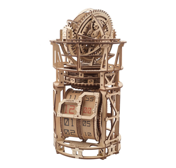 Spadlo Vám někdy jablko na hlavu? Stavebnice hodinového strojku vyrobená z překližky. Zkuste čelit náročné výzvě a vypořádat se s účinky gravitace na hodinový mechanismus stavbou důmyslného tourbillonu, který byl poprvé vyvinut na sklonku 18. století Abrahamem‑Louisem Breguetem. Toto pomyslné srdce modelu je zde dovedně ztvárněno jako pohyblivá kopule observatoře, která podnítí Vaši fantazii k úvahám o nebeské mechanice, či snad hledání nových planet, nebo dokonce inteligentního života. Strojek je do pohybu uváděn natažením odolné kovové pružiny, která jej dokáže udržet v chodu a předvést jeho funkci až po dobu tří hodin. Nabízí tak dostatek času, abyste otevřenou konstrukcí mohli detailně studovat hypnotický chod mechanismu, nebo relaxovat, zatímco tiká na pozadí. Čas přitom model nápaditě vyobrazuje pomocí dvojice velkých kotoučů, které můžete otáčením samozřejmě přesně nastavit. Minutový kotouč se otáčí plynule zároveň s tourbillonem a hodinový kotouč skokově díky perkusnímu mechanismu. Tato neobyčejná observatoř nezabere příliš místa, a nabízí se proto také jako vhodný dárek pro všechny, kdo hledají atraktivní zpestření svého pracovního stolu. Vybaveno detailním návodem k sestavení. Hlavní vlastnosti:338 precizně vyřezaných dílkůvysoká obtížnost sestaveníaž 3 hodinu chodu na jedno nataženímožnost nastavení přesného časunavrženo a vyrobeno na Ukrajině