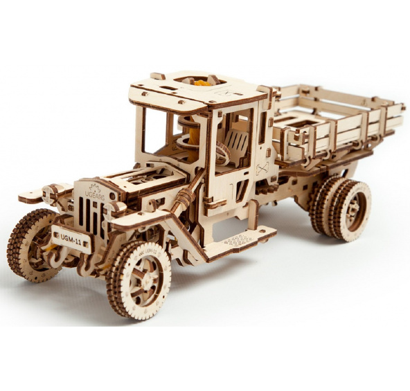 Závozníkem éry prohibice. Stavebnice nákladního vozu vyrobená z překližky. Patří mezi nejnáročnější modely v nabídce, jeho kompletace Vás bude zvláště těšit. Korba vozidla má sklopné bočnice a je připravena pro Vaše vizitky. Mechanika je do detailu propracovaná, a vy tak můžete pozorovat pohyb pístů motoru. Vůz je řiditelný a díky natahovacímu mechanismu je schopen jízdy. Má funkční převodovku pro volnoběh a zpátečku. Může se pyšnit dalšími mechanickými podrobnostmi, plynovým pedálem/ovladačem rychlosti a ruční brzdou. Jízdní dynamice slouží odpružená přední náprava a pogumování kol také zajišťuje spolehlivý kontakt s povrchem jízdní dráhy. Jako příslušenství je k náklaďáku nabízena celá sada modifikací, s níž prohloubíte celkový zážitek ze stavby a provozu modelu. Uspořádejte závody s dalšími modely UGEARS! Vybaveno detailním návodem k sestavení. Hlavní vlastnosti: 420 precizně vyřezaných dílkůvysoká obtížnost sestaveníotevírací dveře a kapotaodpružená přední náprava, pogumování kolrozšiřitelný o bohaté příslušenstvívýsledný model je řiditelný a schopný samostatné jízdy včetně zpátečkyovládání rychlostinavrženo a vyrobeno na Ukrajině