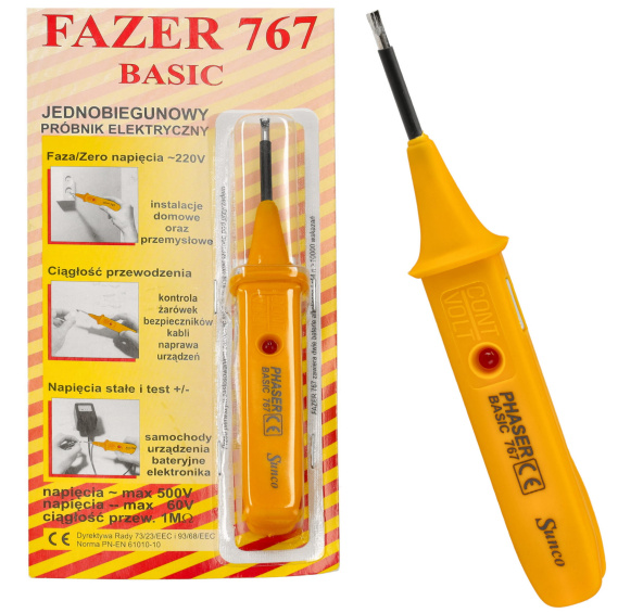 Tester Fazer 767 se také používá k měření stejnosměrného napětí v automobilech, bateriových zařízeních a elektronice (s maximální úrovní 60 V). Dokáže také detekovat fázi a nepřítomnost napětí v domácích a průmyslových instalacích (až 500 V).