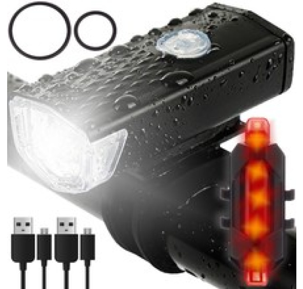 • SPECIFIKACE - Černá barva; materiál: plast + ABS; pracovní doba až 12 hodin (v závislosti na použitém režimu); nabíjení: micro USB kabel; tři režimy svícení přední svítilny: silné světlo, stroboskop, slabé světlo; čtyři režimy svícení zadní svítilny: přechod „nahoru a dolů“, rychlé blikání, přechod velmi rychlý, stálý; kapacita baterie předního světla - 1200 mAh; voděodolný: ano IPX-6; rozměry přední lampy (výška / šířka / hloubka): 5 x 6,5 x 3cm; rozměry zadní svítilny (výška / šířka): 7,5 x 3cm; hmotnost přední lampy: 28 g; zadní nízká hmotnost: 13 g; hmotnost v balení: 89 g.