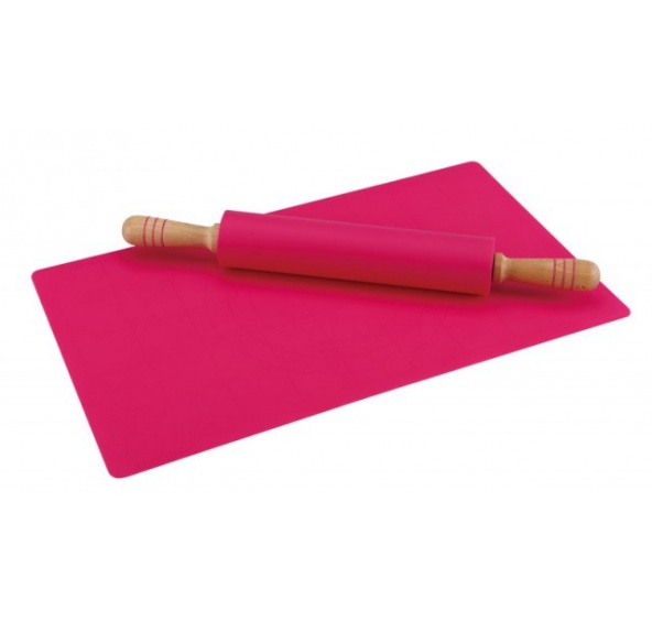 Popis produktu Vál silikonový s válečkem, růžová - Renberg- Silikon- vál 48x28 cm - lze použít jako pečící papír- váleček 43,5x5,2 cm- barva: růžová- tepelně odolné od -40°C do +230°C