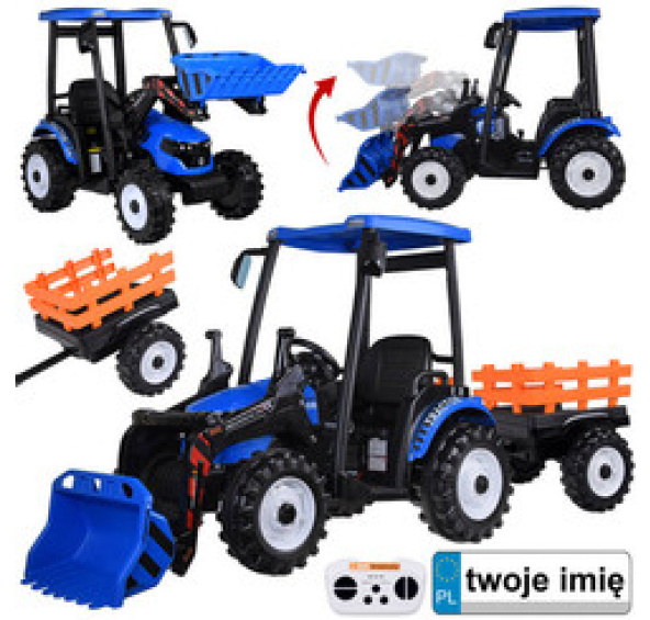Velký traktor na baterie s přívěsem a lžící je splněním snu každého Malého Farmáře! S takovým vybavením jsou jarní úklidy na zahradě hračka! Traktor poháněný 2 silnými motory 24V 200W si poradí jak na asfaltu, dlažebních kostkách, tak i na trávě. Propracovaný traktor věrně zobrazuje jeho plnohodnotnou verzi. Určitě si získá uznání jak u dítěte, tak u přátel z okolí.