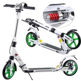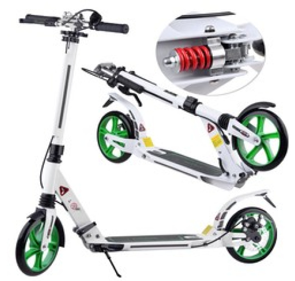 Velká skládací koloběžka s ruční a tlakovou brzdou a tlumičem je skvělá pro každodenní použití. Koloběžka je určena pro děti, dospívající i dospělé. Je vyrobena pevně a s důrazem na nejmenší detaily. Dobře funguje na asfaltovém povrchu i na méně rovných chodnících. Pro maximální bezpečnost je koloběžka vybavena dvěma kotoučovými brzdami a tlakovou brzdou na zadním kole. Na zadní brzdě je také odrazka pro lepší viditelnost v uličce. Jednoduchá skládací konstrukce je neuvěřitelnou předností koloběžky, která umožňuje snadnou přepravu a skladování. Kromě toho je součástí balení popruh, díky němuž lze koloběžku snadno přehodit přes rameno, a pásek pro připnutí koloběžky k sobě, když např. cestujeme vlakem, tramvají, autem. Velká městská koloběžka pro každého je robustní sportovní zařízení s nastavitelnou výškou řídítek. Vynikající zábava pro venkovní hraní. Koloběžka umožní sportovní životní styl a hladký pohyb uličkami v parku. Koloběžka je zkrátka maximálně praktická - na cesty do kanceláře, do školy, na sport i na výlety po městě. Jedinečná koloběžka vytvořená pro děti a mládež, která zvyšuje jejich fyzickou aktivitu a dělá ji velmi zábavnou. Bude ideální na procházky, výlety na hřiště. Pečlivé řemeslné zpracování námi nabízeného skútru s precizními detaily zajistí bezpečnou a příjemnou jízdu. Koloběžka má opěrku pro nohy pro bezpečné parkování. Jedinečná velká litá PU kola (? 200 mm) zajistí rychlou a pohodlnou jízdu.