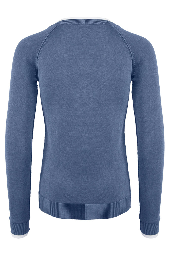Svetr má dlouhé rukávy s žebrovanými manžetami, V-výstřih kolem krku, elastický spodní lem a na přední levé straně je vyšívané logo.