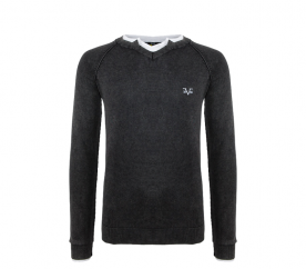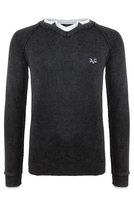 Pánský svetr od renomované modní značky Versace, vyrobený ze 100% bavlny. Svetr má dlouhé rukávy s žebrovanými manžetami, V-výstřih kolem krku, elastický spodní lem a na přední levé straně je vyšívané logo.