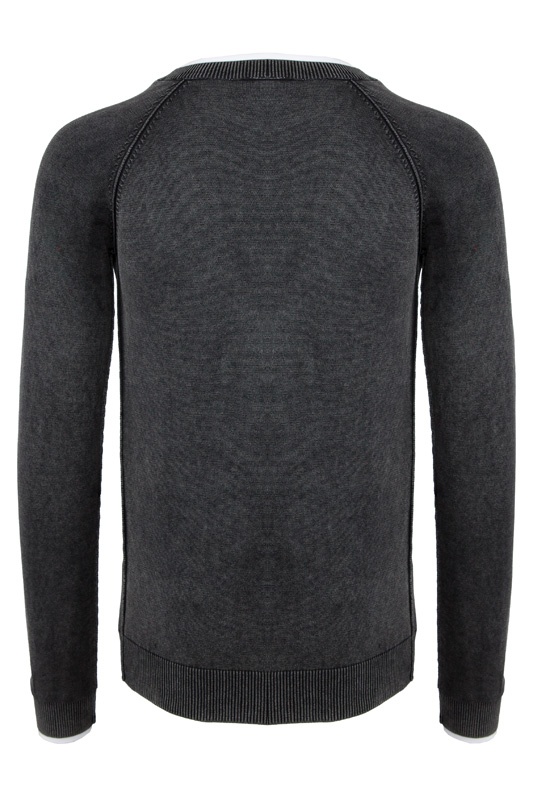 Svetr má dlouhé rukávy s žebrovanými manžetami, V-výstřih kolem krku, elastický spodní lem a na přední levé straně je vyšívané logo.
