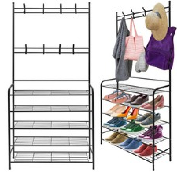 Popis produktu Věšák na oblečení s policemi na boty Černý Ruhhy 19171