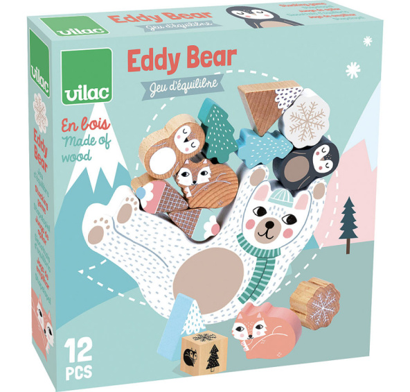 Balanční hra v jemných skandinávských tónech. Hoďte kostkou a podle barvy, která vám padne, zkuste na Eddyho břicho naskládat sněhové vločky, polární lišky, tučňáky nebo hory a chutnou zmrzlinu. Budete nejšikovnější, nespadne vám vše z Eddyho?!Tato hra pomůže s rozvojem jemné motoriky, zručnosti a soustředění.Ilustrováno Michelle Carlslund. Hlavní vlastnosti: 1 základna, 12 herních dílků a kostkailustrace Michelle Carlslundvyrobeno ekologicky, šetrně k prostředí Cestujte s námi v naivním a elegantním světě dánské ilustrátorky Michelle Carlslund, světě jemných barev, který je plný roztomilých medvědů a přátelských ptáčků. V roce 2010, když Michelle ještě studovala grafický design, vytiskla doma své ilustrace a zkusila je prodat na designovém trhu, kde se setkaly s velkým úspěchem! Několik obchůdků chtělo začít prodávat její výtvory, a tak ji napadlo, že by bylo fajn začít podnikat. Michelle se rychle stala uznávanou nezávislou ilustrátorkou. Dnes lze její ekologická grafická díla zakoupit po celém světě v designových buticích, papírnictvích a dětských obchodech. Michelle se inspiruje vším kolem ní. Její výtvory jsou něžné a poetické, stylizovaný a dětinský styl, který se perfektně prolíná s hračkami firmy Vilac. „Jsem hranolky milující, časová optimistka a tvůrkyně ekologických plakátů a ilustrátorka na volné noze se sídlem v dánské Kodani,“ to by řekla ilustrátorka Michelle Carlslundová, kdyby se měla popsat jednou větou.