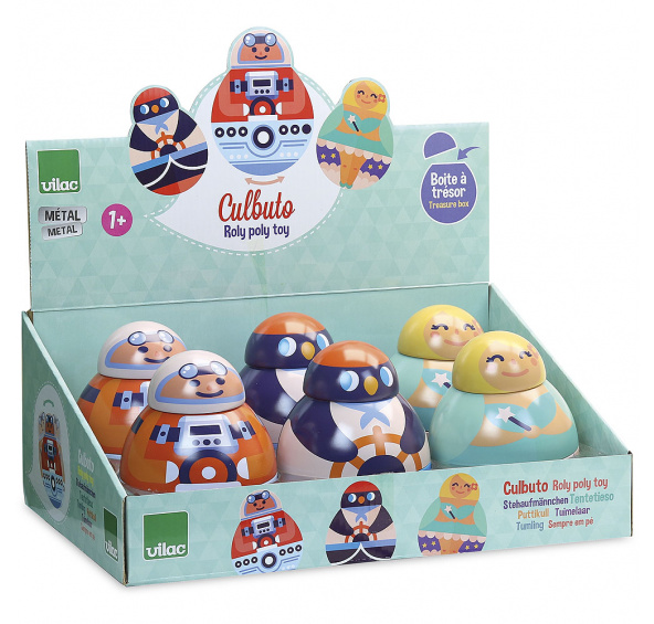 Vtipná kovová dóza s ilustrací postavičky víly, tučňáka a závodníka, do které si děti mohou uložit své poklady. Zároveň se díky svému tvaru kývá ze strany na stranu. Hračky Vilac mají značku francouzské agentury ADEME, to znamená, že tyto dřevěné hračky jsou vyráběny ekologicky. Šetří životní prostředí, neznečišťují půdu, vodu a vzduch, neplýtvají energiemi.