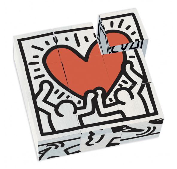 Sada klasických obrázkových kostek v netradičním provedení, s originálními kresbami amerického výtvarníka Keitha Haringa. Skládejte a odhalujte nezaměnitelná grafická díla jednoho z průkopníků pop‑artu a street artu. Zpestřete poličku a pokoj jedinečnou a nepřehlédnutelnou ikonografií. Kostky jsou vyrobeny z odolného masivního dřeva opatřeného kvalitním potiskem. Hlavní vlastnosti:9 kostek, 6 různých obrázkůdesign Keith Haringodolné provedení z masivního dřeva Keith Haring (1958–90) byl umělec a aktivista, který často používal své umění k vyjádření názoru na různé sociální problémy. Byl jedním z nejznámějších mladých umělců mezi filmaři, umělci a hudebníky, jejichž tvorba reagovala na městskou pouliční kulturu osmdesátých let. V roce 1989 mu byl diagnostikován AIDS, Keith Haring tak založil nadaci za účelem poskytnutí financování a využití svého umění organizacím bojujícím proti AIDS na celém světě, aby zajistil, že jeho filantropický odkaz bude pokračovat neomezeně. Posláním Nadace Keitha Haringa je udržovat, rozšiřovat a chránit dědictví Haringova umění a jeho ideálů. Nadace podporuje organizace, které pomáhají znevýhodněným dětem, stejně jako ty, které se zabývají vzděláváním, výzkumem a péčí týkající se HIV a AIDS. Haring Foundation zastupuje Arestar, LLC, mezinárodní společnost pro licencování a poradenství značek, která se specializuje na umění, módu a designové značky.
