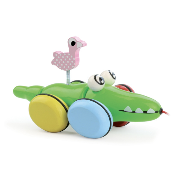 Krokodýl Krok a jeho kamarád růžový plameňák Odilm, který se při tahání hýbe. Tahací hračka z lakovaného dřeva, s oválnými pogumovanými koly. Vyrobeno ve Francii. Hlavní vlastnosti: podporuje rovnováhu a koordinaci pohybůvyrobeno ve Francii