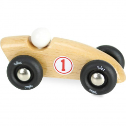 Závodní auto speciálního dizajnu v přírodní barvě, vyrobeno z lakovaného dřeva s kovovými pogumovanými koly. Je vhodné jak ke hraní tak jako dekorace do pokojů dětí či dospělých. Vyrobeno ve Francii. Hračky Vilac mají značku francouzské agentury ADEME, to znamená, že tyto dřevěné hračky jsou vyráběny ekologicky. Šetří životní prostředí, neznečišťují půdu, vodu a vzduch, neplýtvají energiemi. Hlavní vlastnosti: Vyrobeno ve Francii