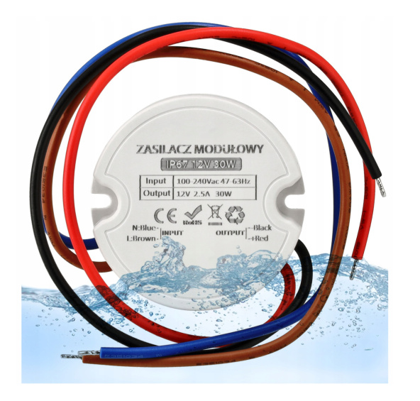 - Model: vodotěsný LED zdroj 2,5A 30W IP67 12V