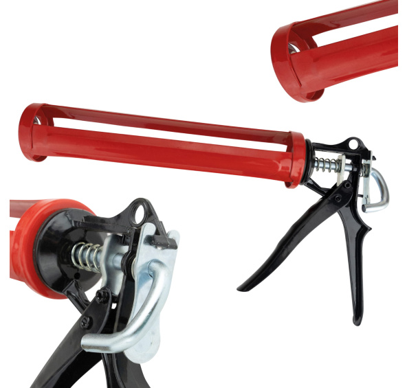 Pistole na silikon a lepidlo má robustní ocelovou konstrukci, takže si snadno poradí i s hustými hmotami.