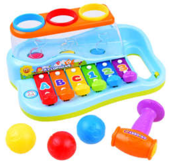 Při hře může dítě udeřit kladívkem do kláves nebo prorazit otvory kuličky - pak se ozve zvuk cimbálu. Při úderu do koulí se ozývají další tóny. Na klávesách jsou namalována čísla a písmena, což dítěti dále pomáhá zapamatovat si pořadí úderů.