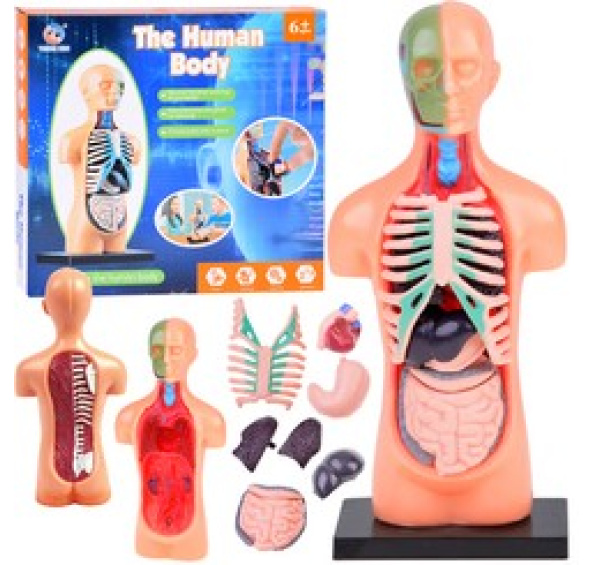 Vyjímatelné orgány – Model má pohyblivé, vyjímatelné orgány, jako jsou srdce, plíce, játra, žaludek, slinivka, tlusté a tenké střevo, což umožňuje důkladné seznámení se s jejich strukturou a vzájemnými propojeními. Usnadňuje to učení a pochopení funkcí jednotlivých orgánů v tělesném systému.