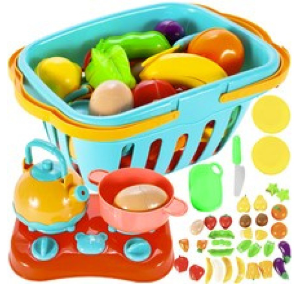 Sada na vaření zeleniny a ovoce v košíku je skvělým doplňkem zábavy pro malé kuchaře, kteří si rádi hrají na domácnost, nakupují nebo vaří. Děti se rády dívají na dospělé a sada jim umožní hrát role již od útlého věku a poslouží vzdělávacím účelům. Mimořádně "chutná" a barevná kolekce napodobenin ovoce a zeleniny byla precizně vyrobena a jejich živé a šťavnaté barvy ovlivňují estetickou hodnotu, přitahují tak pozornost dítěte a podporují hru.
