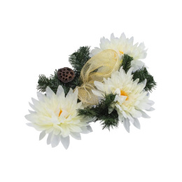 Popis produktu Věnec s dekorací - krémové chryzantémy + ozdobné listyDekorativní věnec - chryzantémy + ozdobné listy Barva: krémová Celková šířka: cca. 50 cm Šířka hlavy květu: cca.15 cm