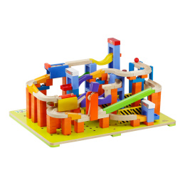 Ukázka kuličkové dráhy Wonderworld TRIX® Školní set. Školní set kuličkové dráhy TRIX® nalezne uplatnění jak při hrách, tak při vzdělávání. Jeho součástí je trojice příruček, z nichž každá sleduje mírně odlišný cíl. Naleznete mezi nimi návody ke stavbě různých variant dráh, příručku s rébusy a příručku k výuce základů fyziky. S kuličkovými dráhami ze série TRIX® od firmy Wonderworld si užijete spoustu skvělé zábavy. Díky své variabialitě, nápaditosti a propracovanému konceptu celé série TRIX® se jedná o velmi hodnotnou hračku, kterou ocení jak děti, tak dospělí hráči. Všechny kuličkové dráhy ze série TRIX® lze vzájemně kombinovat, a stále tak zvedat laťku kombinací a zábavy. Svou ohromnou variabilitou rozvíjí dětskou představivost, možnosti sestavení jsou téměř nekonečné. Sestavená dráha je vždy stabilní díky promyšlenému a jednoduchému systému spojování dílů. Základní stavební díly jsou vyrobeny z dřevoplastu, vlastní dráha pak převážně z masivního dřeva. Součásti nabízí kvalitní hladkou povrchovou úpravu a kombinaci atraktivních sytých barev s barvou přírodního dřeva. Stavebnice je dodávána v praktickém plastovém boxu s víkem a madly k přenášení. Dráhy lze doplnit také drobným příslušenstvím, základními kostkami a ozdobnými kuličkami, které naleznete v naší nabídce. Hlavní vlastnosti:255 dílů celkem, 6 nápaditých překážeksystém spojení zaručující stabilituodolné provedenívytříbená barevnost a povrchová úpravapraktické balenílze kombinovat s dalšími dráhami ze sortimentu výrobce Ukázka možné kombinace kuličkových dráh Wonderworld TRIX®.