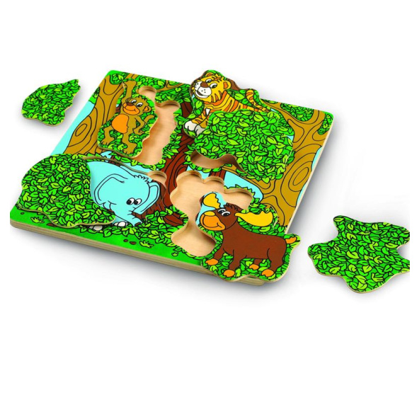 Dvouvrstvé puzzle se zvířátky ukrývajícími se v porostu. Uhodnete, jaké zvíře se kde schovává? Skládačka je vyrobena z odolné překližky a vyvedena v pestrých barvách, které hravě upoutají dětskou pozornost. Hlavní vlastnosti:základna a 8 dílkůodolné dřevěné provedení