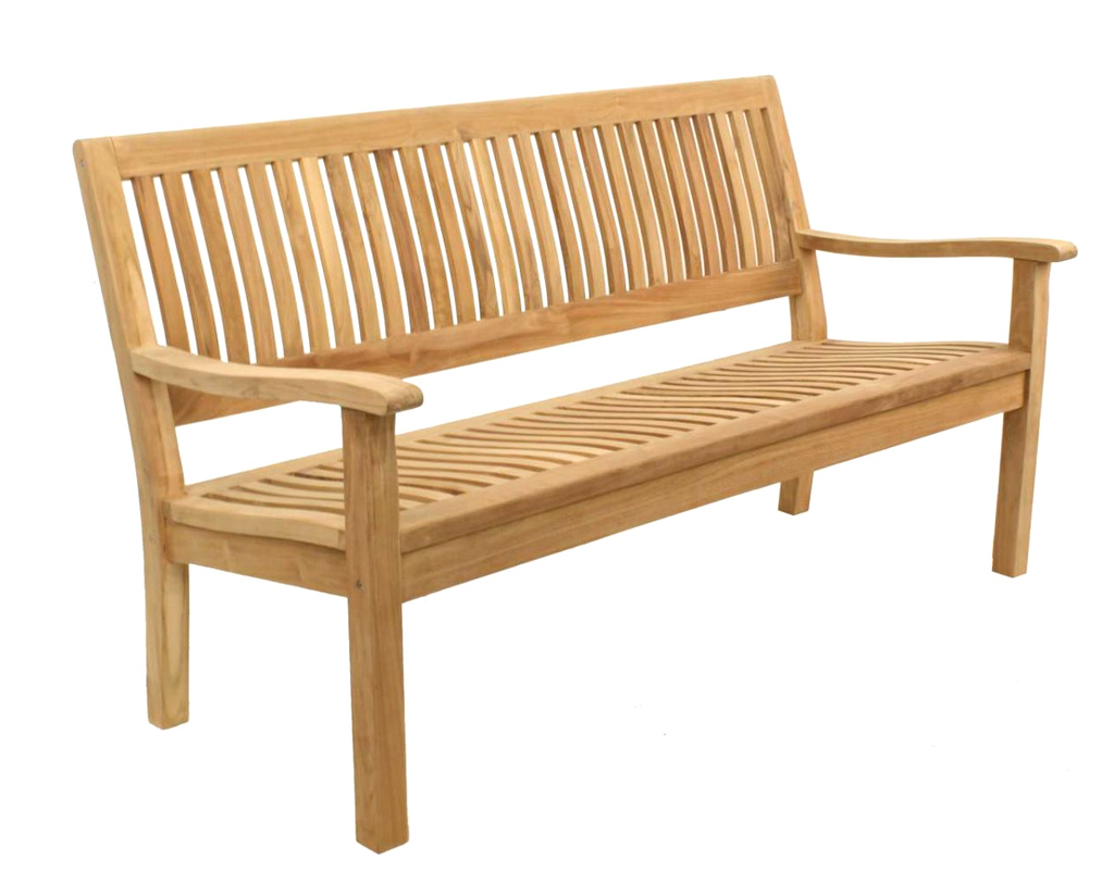 Zahradní lavička z teakového dřeva Kingsbury, nabízí optimální komfort sezení díky ergonomickému tvarování posezu i opěradla.