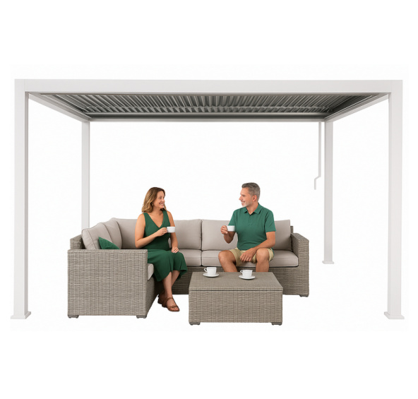 Odolná konstrukce z práškově lakovaného hliníku – odolná vůči korozi a povětrnostním podmínkám Moderní střecha – nastavení úhlu sklonu panelů jedním pohybem Stabilita a bezpečnost – pevné upevnění k podkladu Univerzální styl – elegantní bílá barva se hodí do každého zahradního a terasového prostoru