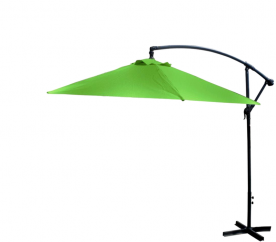 Praktický zahradní slunečník vyrobený z odolného polyesteru, jehož noha je umístěna mimo stíněnou plochu.