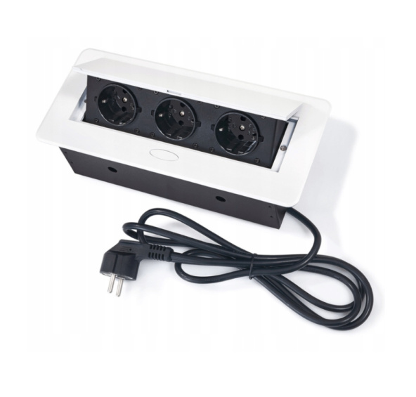 - Sada tří uzemněných síťových zásuvek ve výsuvném pouzdře, vyrobená z vysoce kvalitních materiálů.