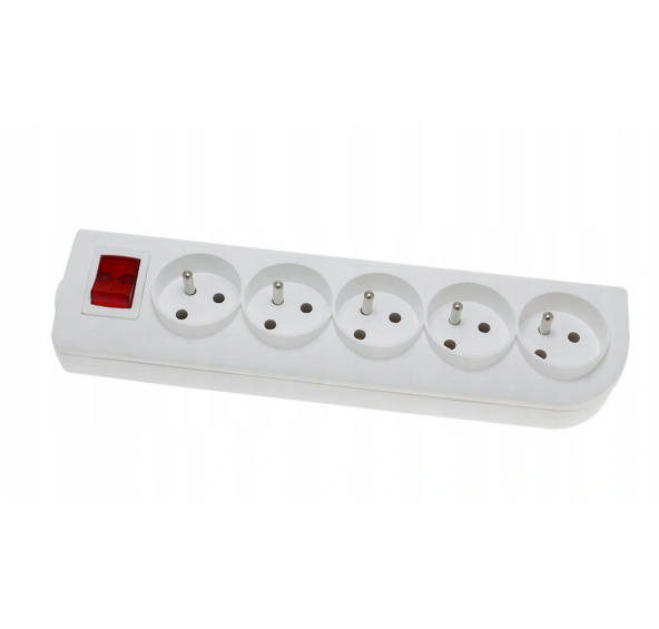 Popis produktu Zásuvka s vypínačem 230V (5x zásuvka, vypínač)Technické specifikace: Napájecí napětí - max. 250V 16A Podsvícený spínač - ANO Uzemnění - ANO Certifikát CE - ANO