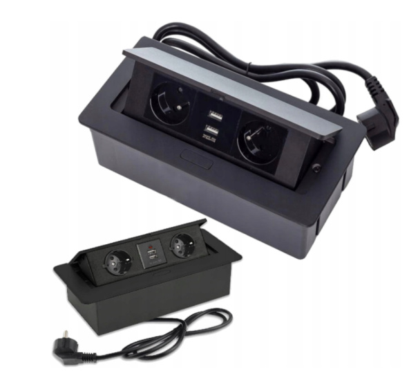 Popis produktu Zásuvkový sloupek pro desku stolu 2x230V + 2xUSB