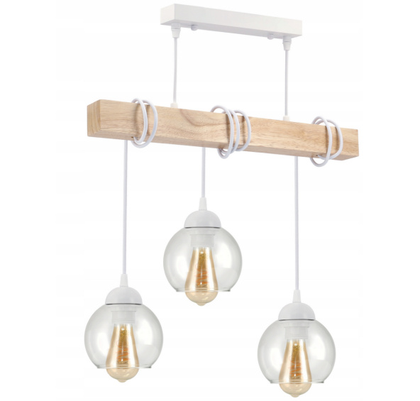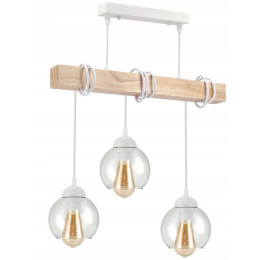 LED závěsné stropní svítidlo, dřevěný trám, 3xE27, kulový lustr, bezbarvý - bílý