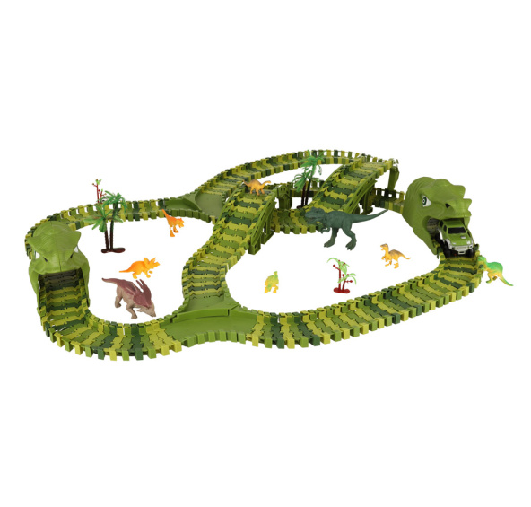 Velká závodní dráha, která malé návštěvníky přenese do kouzelné země plné zajímavých dinosaurů. Dráhu lze postavit různými způsoby - jediným omezením je vaše fantazie. Napájení: baterie. Rozměry autíček: 1,5 x 2,5 m: Rozměry: 9 cm x 5 cm x 5,5 cm.