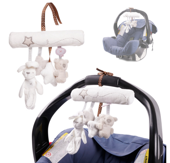 Přívěsek na kočárek je vyroben z měkkého a na dotek příjemného materiálu. Hodí se také jako nosítko a závěs na postýlku. Klidné a jasné barvy povzbudí vaše dítě ke hře.
