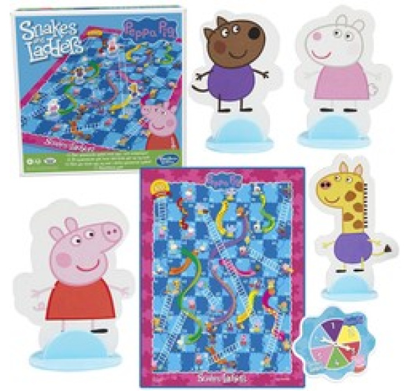Ve hře Žebříky a hadi prasátka Peppy budou hráči závodit po hrací ploše, snažit se vyhnout hadům a pomocí žebříků dosáhnout vítězství. Přívětivý a barevný design s postavičkami z oblíbené dětské pohádky hru pro malé hráče ještě více zpestří.